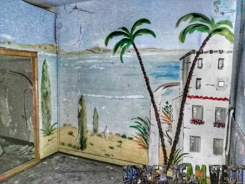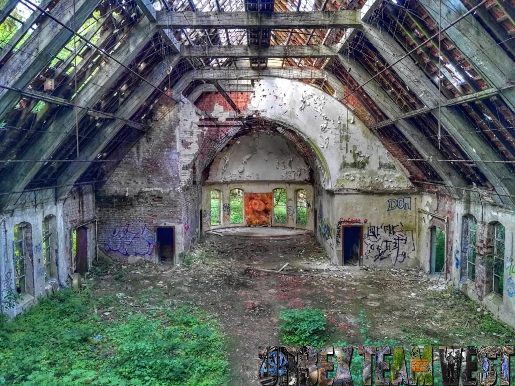 So sieht man einmal wieder wie die Natur ihr Territorium zurückerobert, die Anlage ist seit 1994 aufgegeben und sich selbst überlassen. Als wir das Kino erreichen ist es bereits dunkel so dass wir das Gebäude im Schein unserer Taschenlampen erkunden. Im inneren des Saals erinnert nur noch wenig an die einst glanzvolle Zeit des Gebäudes.