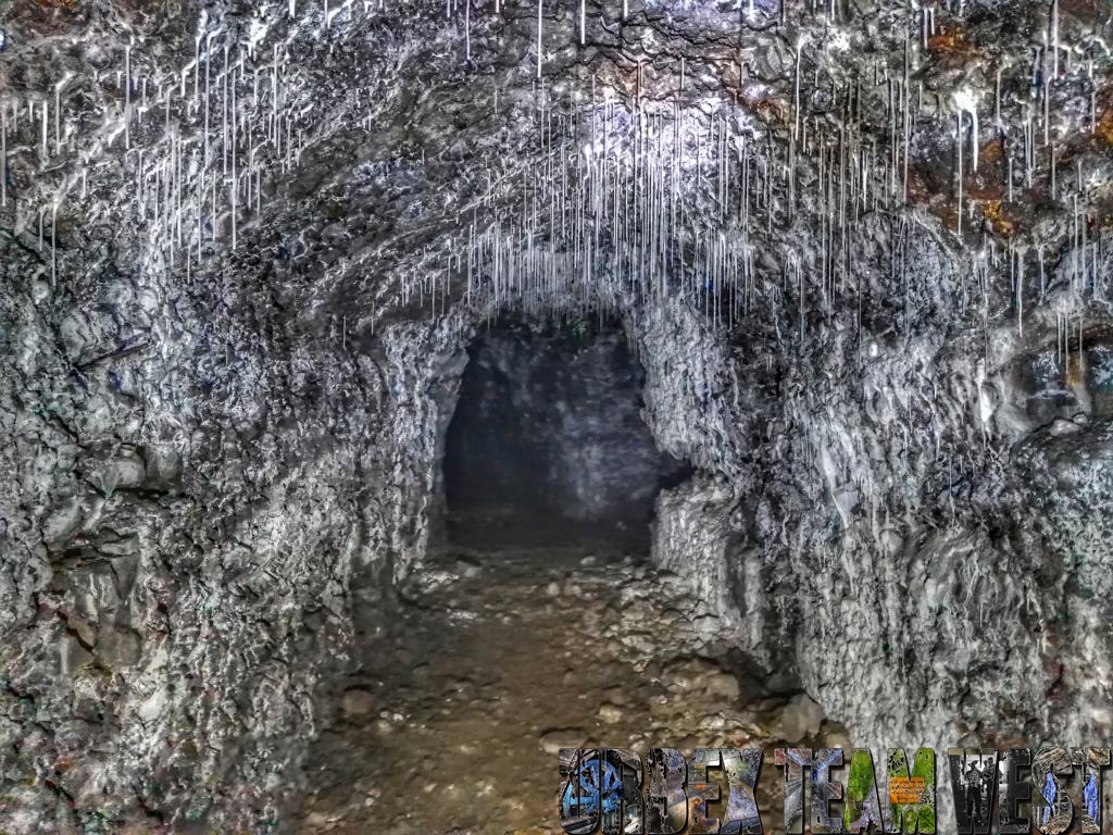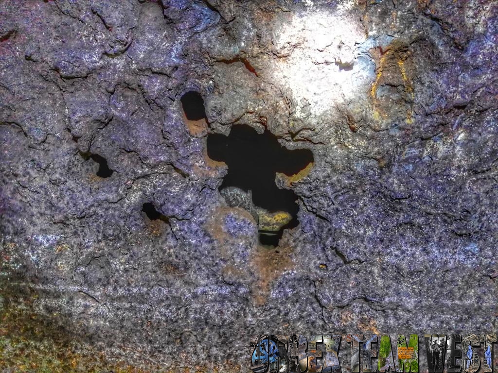 Nach einigem Gesuche stehen wir vor einem Rohr das scheinbar in einen Schuttberg führt, dort hindurch kommen wir in dem nicht ausgebauten Stollen heraus, durch die Sedimente in dem über uns liegenden Schlackeberg sind Tropsteine enstanden, wie Eingangs erwähnt, suchten hier schon im 2. Weltkrieg Menschen Schutz vor den allierten Bombenangriffen. In den Gängen herrscht noch immer eine bedrückende Atmosphere, wir sind froh diesen Bunker in friedlichen Zeiten besuchen zu können.
